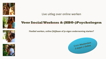 Bied begeleiding en ondersteuning aan cliënten op afstand en breid je praktijk of professionele diensten uit met flexibele online werkzaamheden. Werk volledig vanuit je eigen stijl, op momenten die voor jou passen, en behoud de regie over je praktijk of werkzaamheden. Zo creëer je een extra inkomstenstroom die past bij jouw expertise en planning. Ik begeleid je bij het verkennen van deze mogelijkheden, help je te beoordelen of het aansluit bij jouw ervaring en achtergrond, en zorg dat je op een verantwoorde manier geld kunt verdienen via online werk.